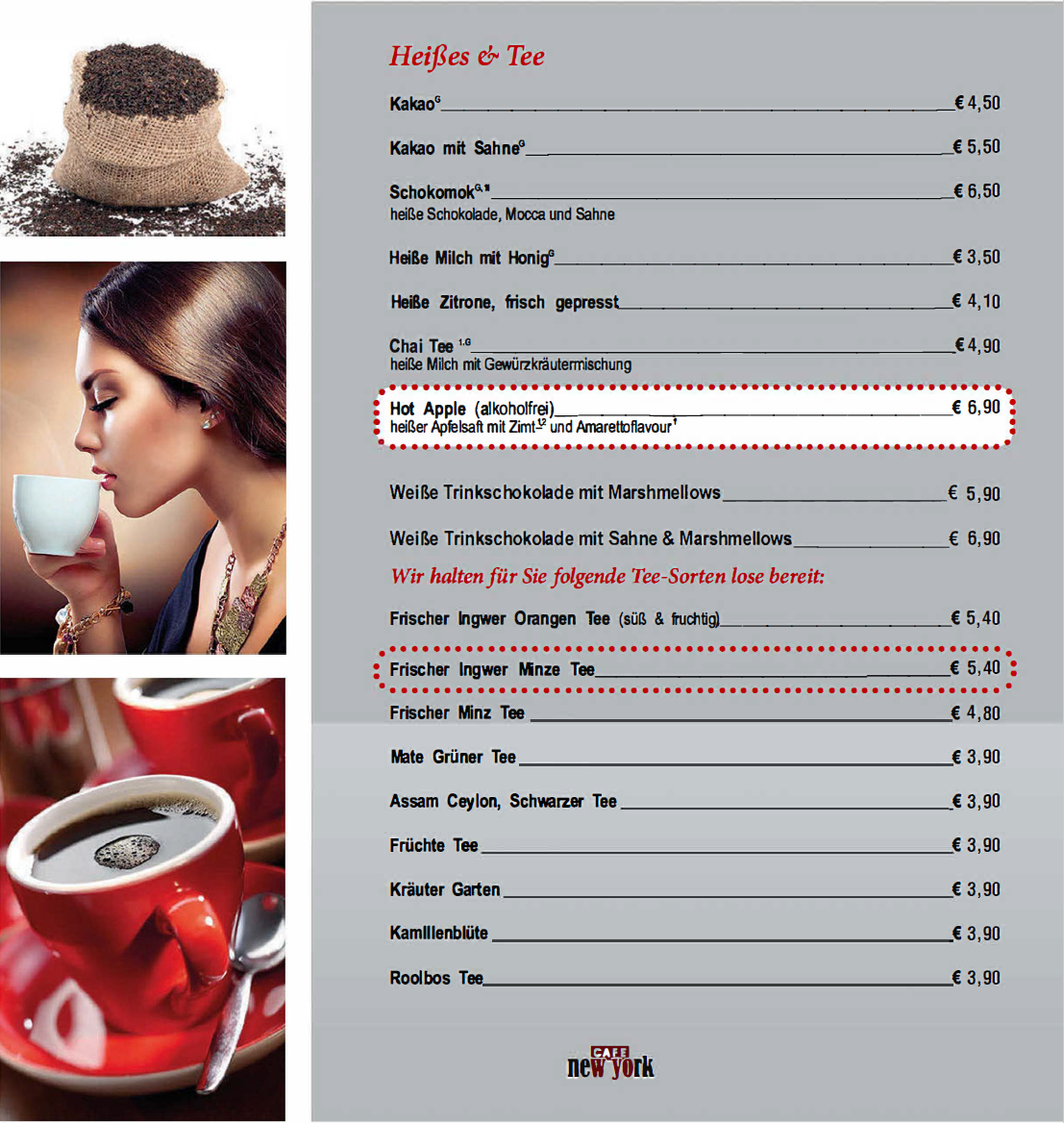 1 hausgemachte Marmelade, Nutella, Honig, Sahnequark, gute Butter, griechischer Joghurt mit Walnüssen, Honig mit frischem Obst, 1 gekochtes Bio-Ei, 2 Brötchen, 1 Croissant